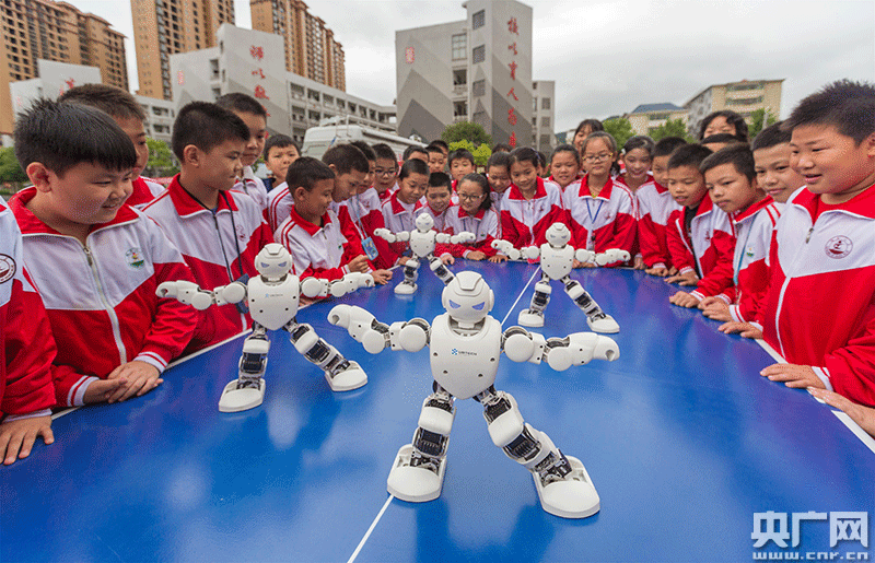 學(xué)生在觀看機(jī)器人表演