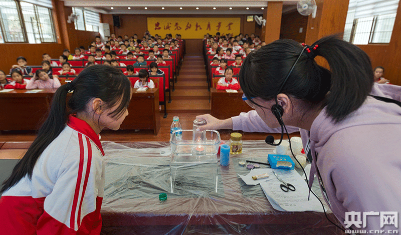 學(xué)生在科普老師的指導(dǎo)下體驗(yàn)神奇的科學(xué)實(shí)驗(yàn)