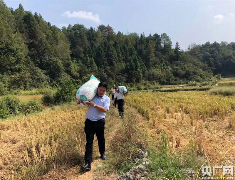 王鵬幫村民扛稻子(央廣網(wǎng)發(fā) 通訊員提供)