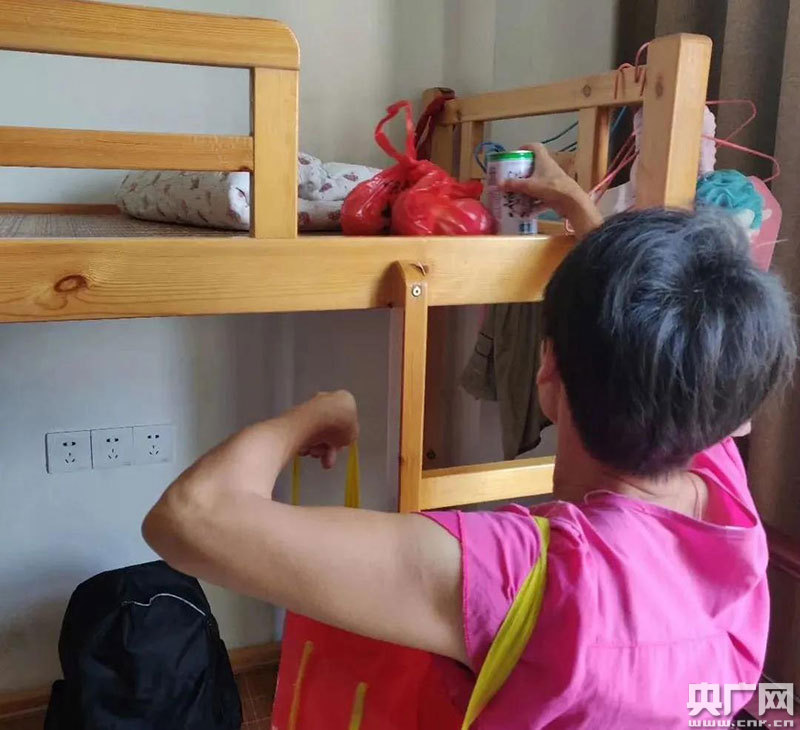 貧困戶熊米蓮在女兒寢室(央廣網(wǎng)發(fā) 通訊員提供)