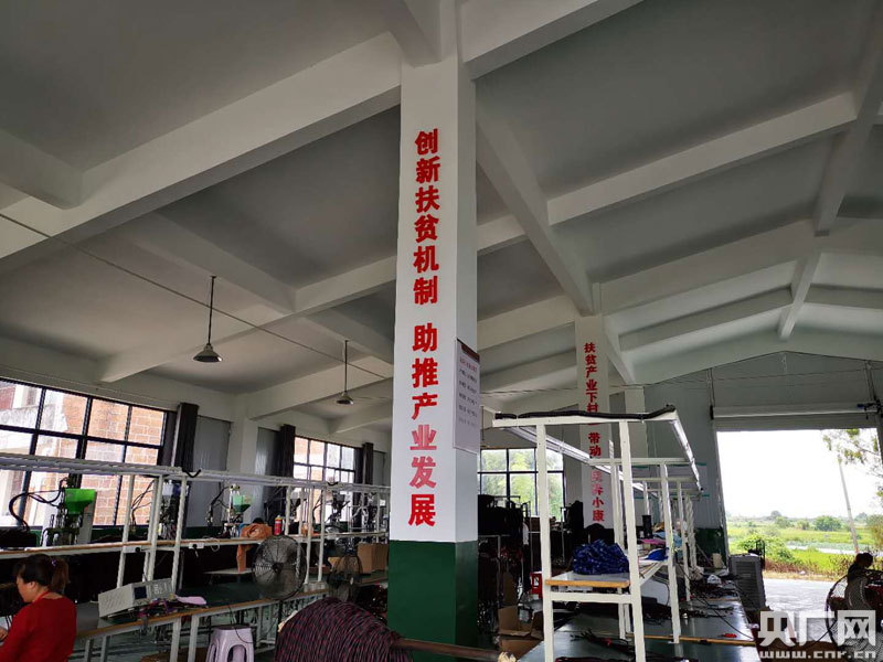 扶貧車間內(nèi),五六臺生產(chǎn)線整齊排列,40多名工友坐在臺前有序操作(央廣網(wǎng)發(fā) 通訊員提供)