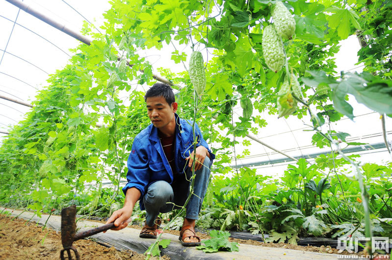 安?h楓田鎮(zhèn)西園村村民周小龍在管理蔬菜