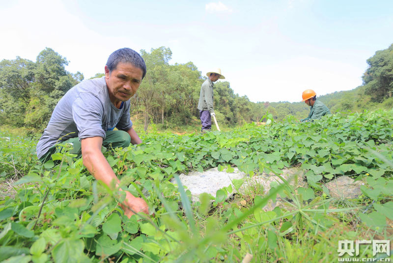 安福縣洲湖鎮(zhèn)汶源村肖柱招(左)等人在觀察中藥材粉防己的長勢