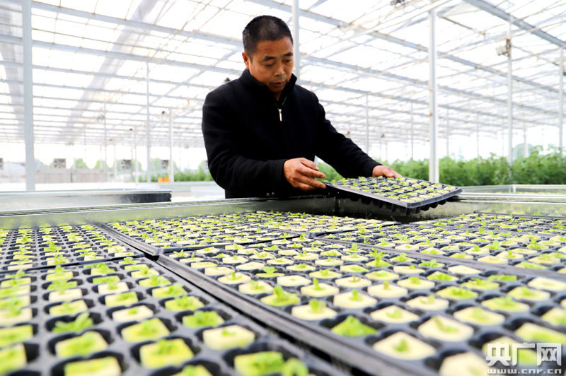 技術(shù)人員在觀察水培蔬菜長勢(央廣網(wǎng)發(fā) 通訊員劉麗強(qiáng) 攝)