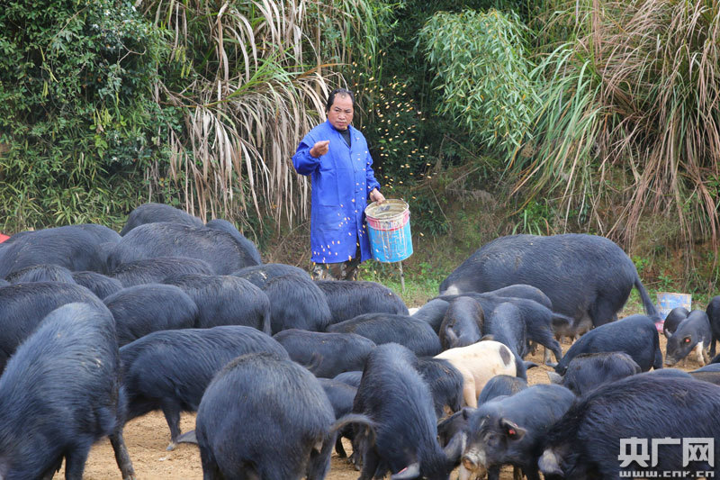 周勇在喂養(yǎng)藏香豬(央廣網(wǎng)發(fā) 通訊員供圖)