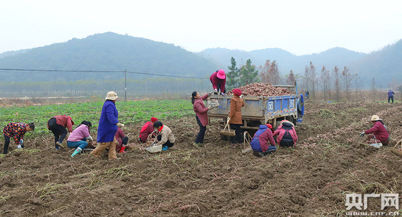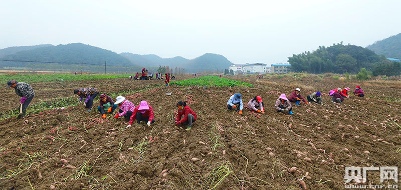 村民在紅薯地里挖收紅薯(央廣網(wǎng)發(fā) 通訊員袁昕 攝)