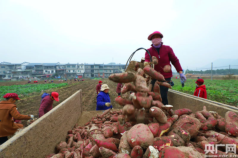 央廣網(wǎng)彭澤12月14日消息(記者鄧玉玲 通訊員袁昕 周為)日前,江西彭澤縣楊梓鎮(zhèn)樂觀村1600余畝紅薯喜獲豐收,附近村民紛紛趕來幫助收獲,F(xiàn)挖出的紅薯堆積如山,數(shù)十名村民撿的撿、裝的裝、搬的搬,忙得不亦樂乎。據(jù)了解,今年受汛期影響,楊梓鎮(zhèn)樂觀村部分農(nóng)田受災(zāi),該鎮(zhèn)農(nóng)技站組織農(nóng)技人員深入田間地頭,面對面指導(dǎo)農(nóng)民災(zāi)后自救,搶種紅薯。預(yù)計今年該鎮(zhèn)紅薯總產(chǎn)量可達880萬斤,帶動周邊400余名群眾增收致富。