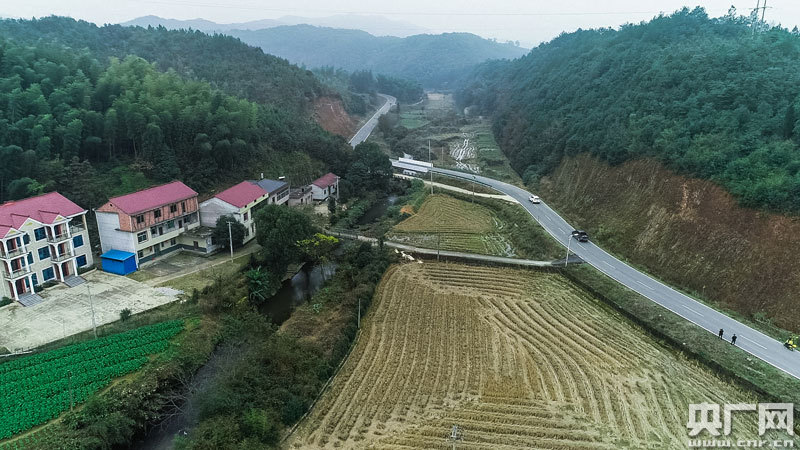 鄉(xiāng)村公路美如畫(huà),村舍與公路交相輝映(央廣網(wǎng)發(fā) 通訊員供圖)