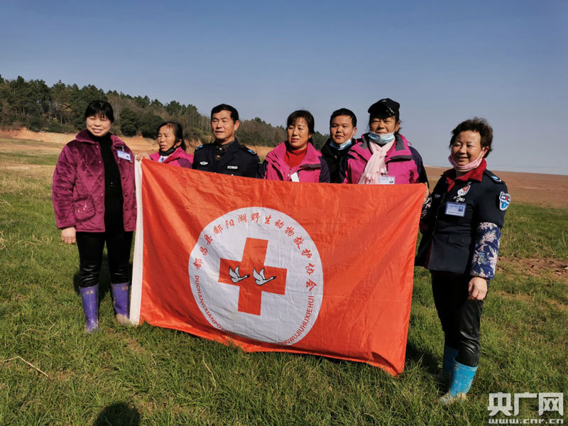 段慶縣(左三)和都昌縣鄱陽湖野生動物救護協(xié)會的部分隊員(央廣網(wǎng)發(fā) 通訊員供圖)