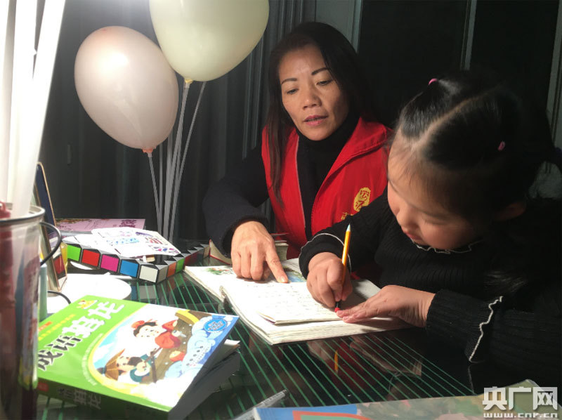 “村嫂”輔導(dǎo)留守兒童作業(yè)(央廣網(wǎng)發(fā) 通訊員供圖)
