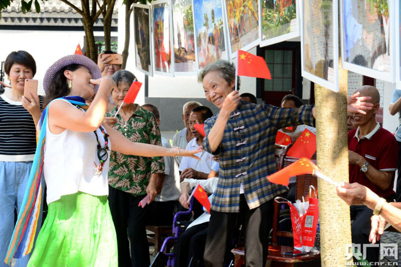 “毛衣奶奶”謝芝蘭帶領志愿者和老人們載歌載舞歡度國慶(央廣網(wǎng)發(fā) 通訊員供圖)