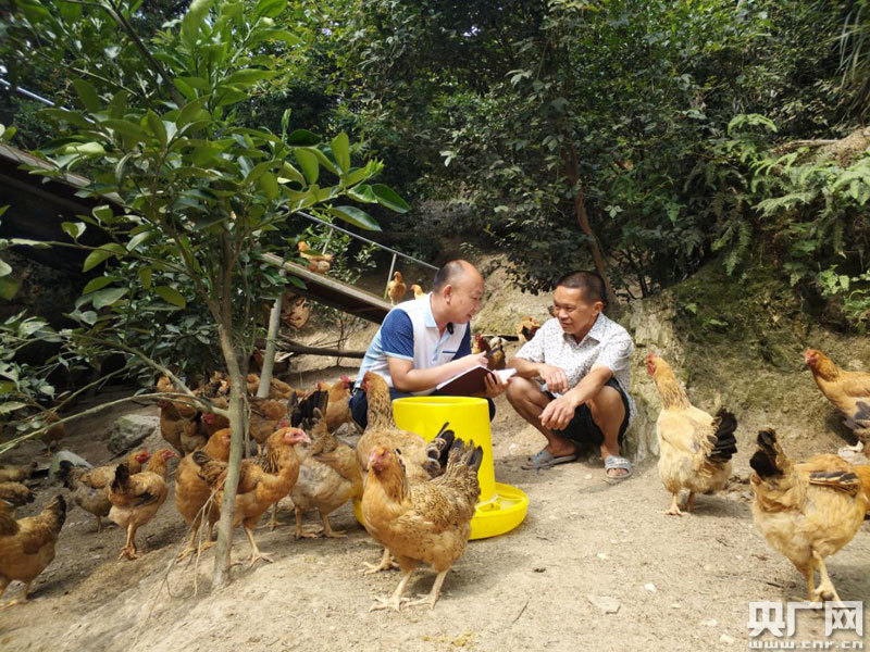 戴宏秋和他的扶貧對象一起討論養(yǎng)殖技術(央廣網(wǎng)發(fā) 通訊員供圖)