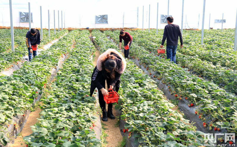 貴溪市鴻塘鎮(zhèn)陵家村村民正在采摘草莓(央廣網(wǎng)發(fā) 通訊員供圖)