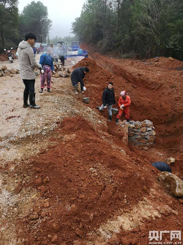 2月12日,村支書(shū)趁著村民回家過(guò)年的契機(jī),到村里一一打招呼后,村民都踴躍支持,當(dāng)天就來(lái)了四五十位村民參與修路。于是就出現(xiàn)了文章開(kāi)頭的一幕。