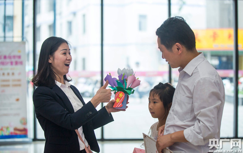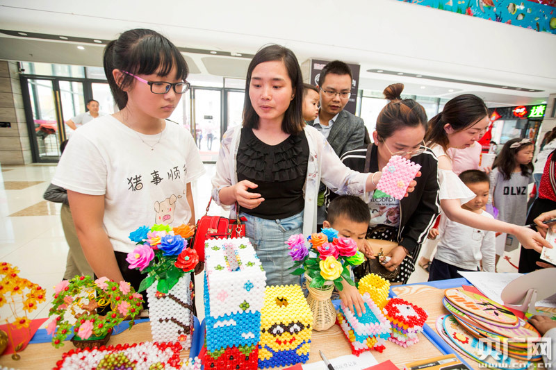 5月19日,人們?cè)诮鞫疾h特殊教育學(xué)校學(xué)生手工作品義賣活動(dòng)現(xiàn)場(chǎng)選購(gòu)手工制品。(通訊員傅建斌攝)