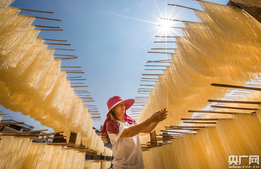 央廣網(wǎng)都昌8月23日消息(記者鄧玉玲 通訊員傅建斌)近日,江西省九江市都昌縣陽峰鄉(xiāng)金星村村民在忙著制面、上架、晾曬,保障市場需求。近年來,都昌縣鼓勵(lì)村民將陽峰面手藝推廣,做強(qiáng)地方產(chǎn)業(yè)特色,帶動(dòng)貧困戶脫貧致富,目前,陽峰鄉(xiāng)發(fā)展面條加工企業(yè)50多家。