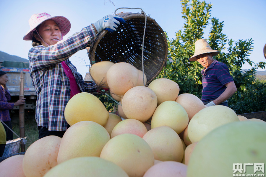 草林鎮(zhèn)大坪村3000畝井岡蜜柚喜獲豐收(央廣網(wǎng)發(fā) 肖桂平攝)