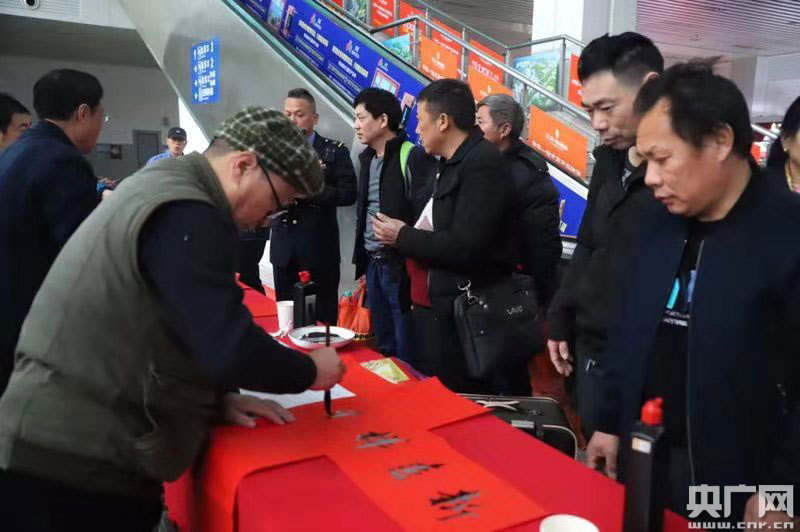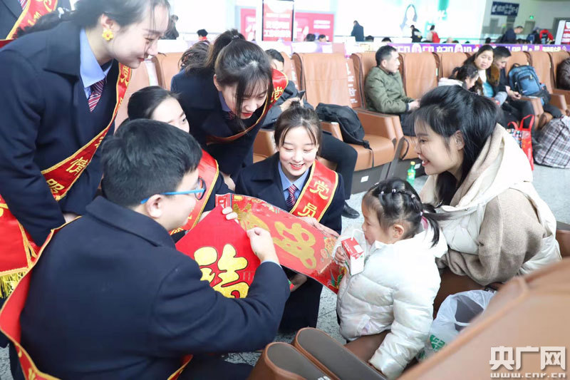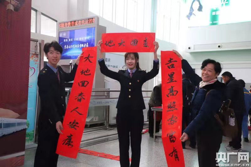 央廣網(wǎng)上饒1月10日消息(記者范存寶 通訊員陳衛(wèi)紅 梁曉晨)1月10日上午,上饒站候車(chē)室內(nèi)一場(chǎng)春運(yùn)首日文藝匯演正如火如荼的進(jìn)行著。伴隨著一首《我和我的祖國(guó)》,正式拉開(kāi)了文藝匯演的序幕。為實(shí)現(xiàn)“平安春運(yùn)、有序春運(yùn)、溫馨春運(yùn),讓旅客體驗(yàn)更美好”的目標(biāo),車(chē)站干部職工準(zhǔn)備了形式多樣、內(nèi)容豐富的文藝節(jié)目,同時(shí),今年在上饒站實(shí)行電子客票業(yè)務(wù),車(chē)站干部職工在首日活動(dòng)中向旅客宣傳電子客票的使用,同時(shí)免費(fèi)向旅客發(fā)放春運(yùn)上饒站列車(chē)時(shí)刻表和贈(zèng)送春聯(lián)、春“福”活動(dòng),讓旅客在春運(yùn)第一天感受到鐵路服務(wù)的溫馨與美好。