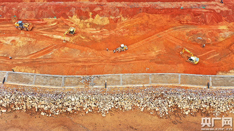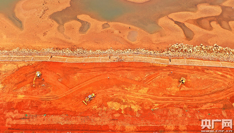 濱江景觀工程施工現(xiàn)場,大型機(jī)械設(shè)備正在緊張作業(yè)(央廣網(wǎng)發(fā) 通訊員司馬天民/攝)