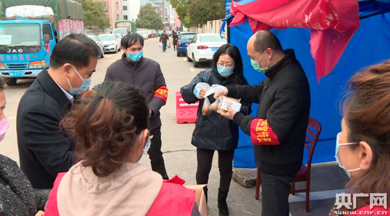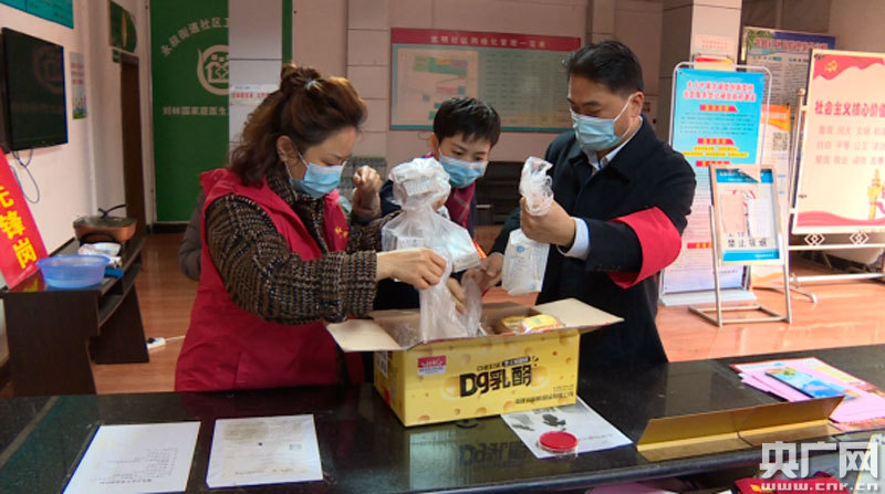 社區(qū)工作人員為一線值守人員分發(fā)早餐