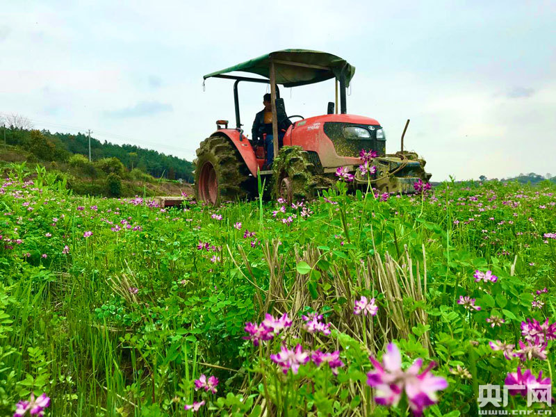 央廣網(wǎng)新余3月18日消息(記者王一凡 通訊員 胡建 陳輝)大地回春,農(nóng)事漸起,3月18日,在新余市渝水區(qū)鵠山鄉(xiāng)坑里村委的千畝水稻種植基地,幾臺(tái)自動(dòng)化犁地機(jī)來回穿梭,農(nóng)機(jī)手正忙著將田里的紅花草翻耕,壓青入田,為三千五百畝有機(jī)稻機(jī)插做準(zhǔn)備,一旁農(nóng)技人員正在根據(jù)土壤的肥力情況指導(dǎo)種植戶深入實(shí)施測土配方施肥!岸揪G肥的種植不僅可以讓種植戶降低成本,更提高了耕地質(zhì)量增加了土壤活性!奔夹g(shù)員黃軍平告訴記者:“紅花草在土地里生長的時(shí)候會(huì)形成根瘤菌,它能夠豐富我們土壤中的微生物,大大增加土壤中的有機(jī)質(zhì)和養(yǎng)分,預(yù)計(jì)每畝可以減少化肥用量20斤。”