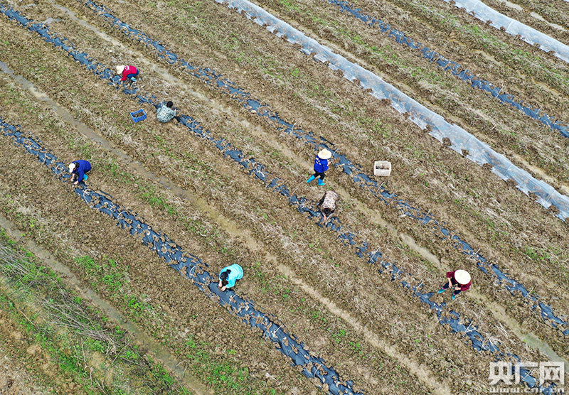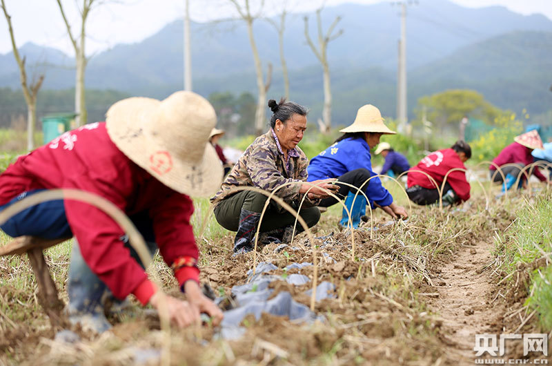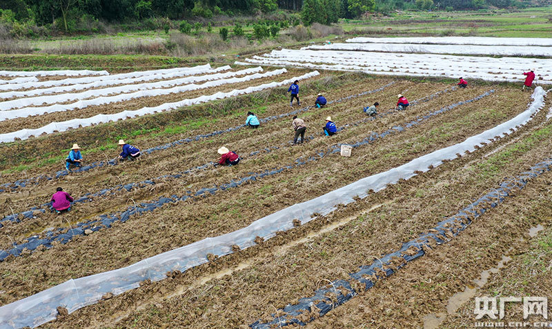 3月20日,村民正在江西省萬安縣高陂鎮(zhèn)泗源村種植早熟西瓜苗