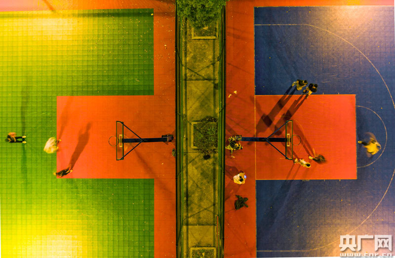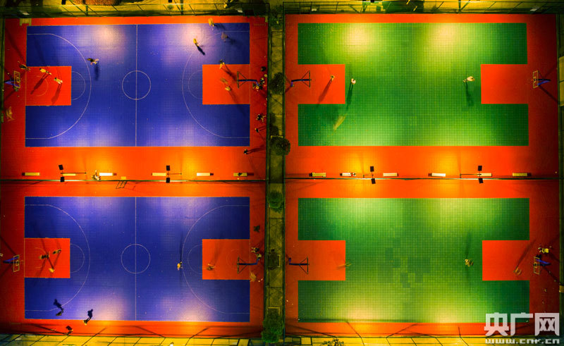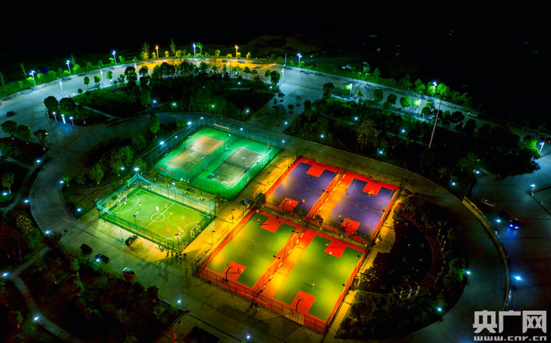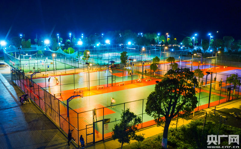 3月26日,在江西省九江市都昌縣體育館露天運(yùn)動(dòng)場(chǎng),市民在夜間鍛煉身體