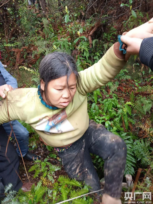 村民不慎掉入深坑,無法自救