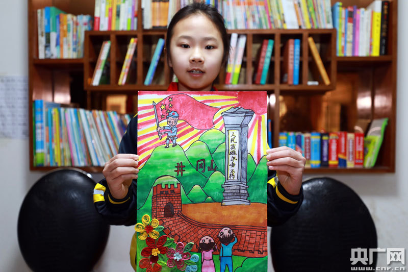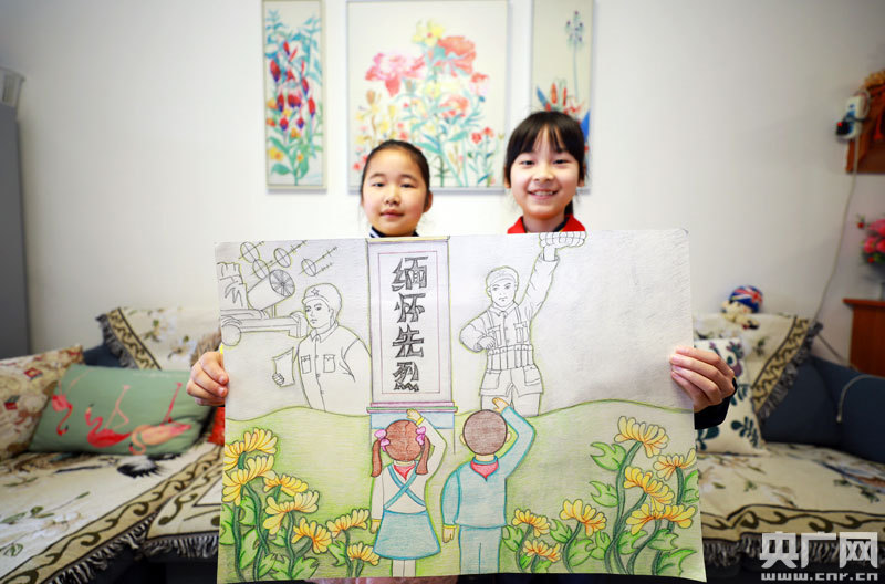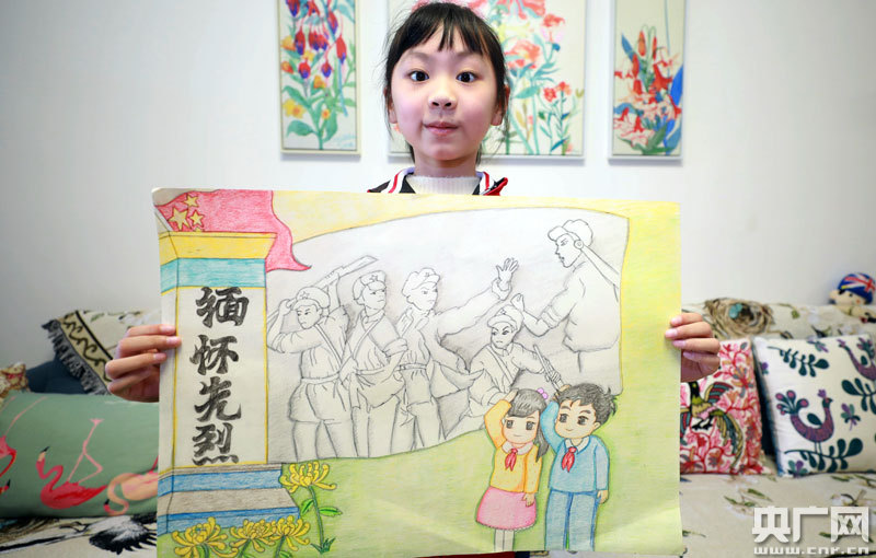 4月3日,江西省吉安市泰和縣學生展示自己創(chuàng)作的“緬懷先烈”主題繪畫作品