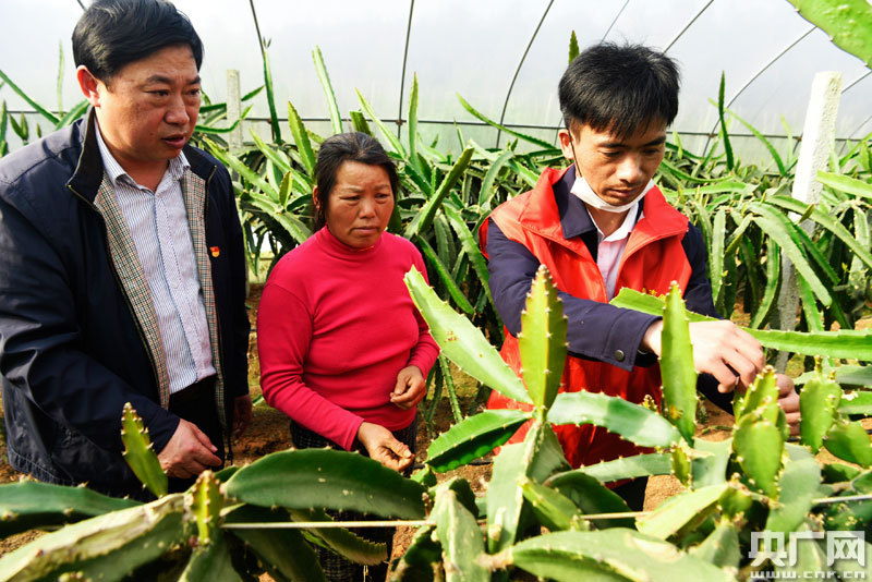 科技員指導(dǎo)農(nóng)民火龍果掐尾垂枝技術(shù)