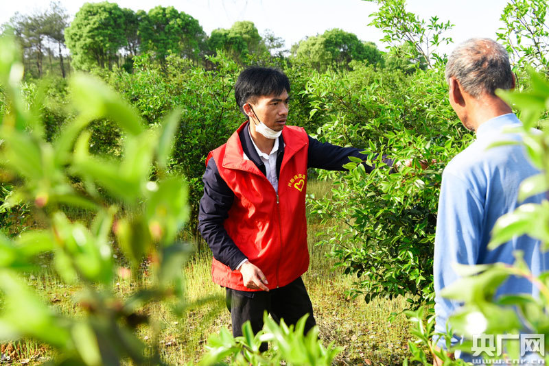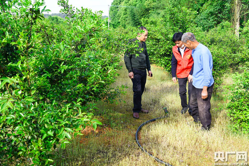 科技人員指導(dǎo)農(nóng)民油茶林夏季灌溉技術(shù)