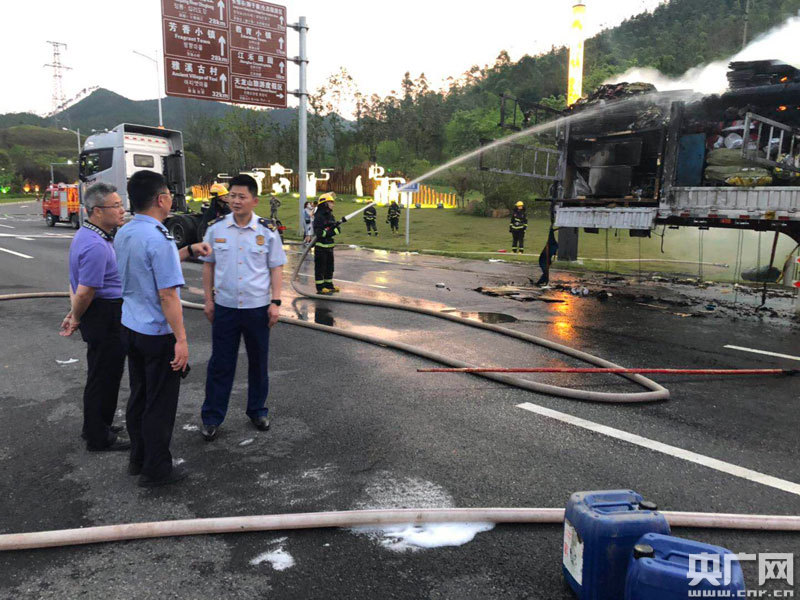 央廣網(wǎng)贛州5月14日消息(記者王一凡 通訊員劉龍華 袁夏云 王蕓)一輛大貨車行駛在高速路上,車內(nèi)突然發(fā)生自燃,隨即,司機尋找最近高速出口駛出,贛州市全南縣救援人員第一時間趕到現(xiàn)場進行處置,無人員傷亡。