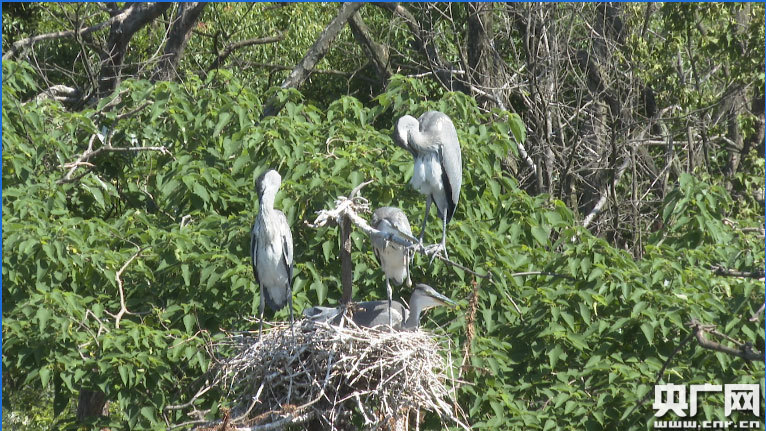 蒼鷺是大型水邊鳥(niǎo)類,頭、頸、腳和嘴均甚長(zhǎng),因而身體顯得細(xì)瘦。上體自背至尾上覆羽蒼灰色,尾羽暗灰色,是夏候鳥(niǎo)中體型較大的鷺類鳥(niǎo)。近年來(lái),因鄱陽(yáng)湖區(qū)生態(tài)環(huán)境的改善、村民護(hù)鳥(niǎo)意識(shí)的增強(qiáng),來(lái)鄱陽(yáng)湖區(qū)繁衍生息的夏候鳥(niǎo)逐年增長(zhǎng)。隨著首批孵化的夏候鳥(niǎo)成年,該村的夏候鳥(niǎo)數(shù)量增加一倍。