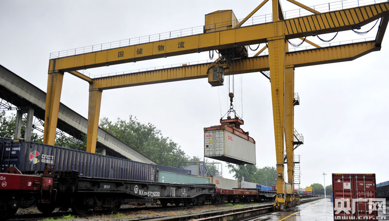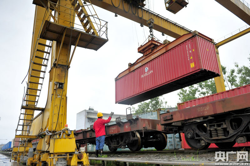 發(fā)車前裝載貨物集裝箱圖(央廣網(wǎng)發(fā) 通訊員李慳 攝)