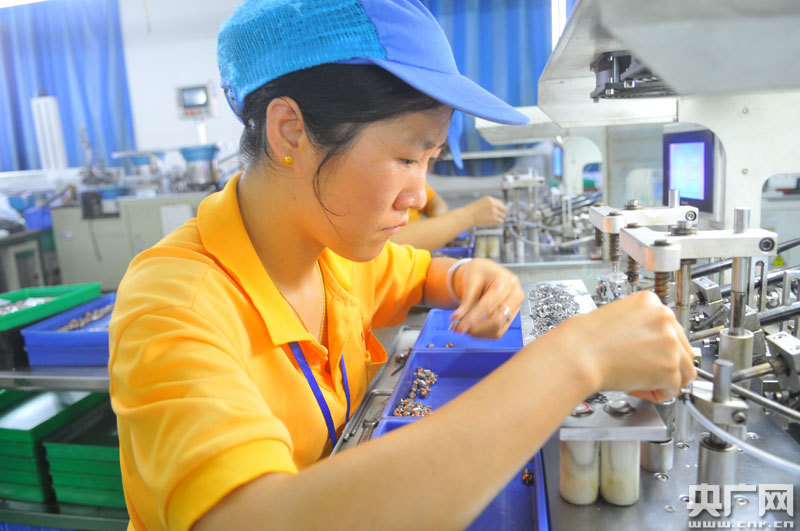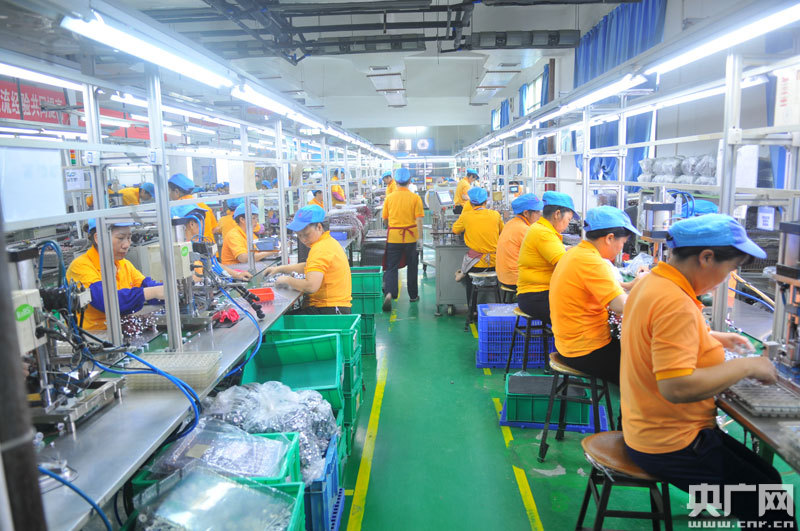 工人們正在加緊生產(chǎn)出口電子馬達(dá)產(chǎn)品(央廣網(wǎng)發(fā) 通訊員陳聲年 攝)
