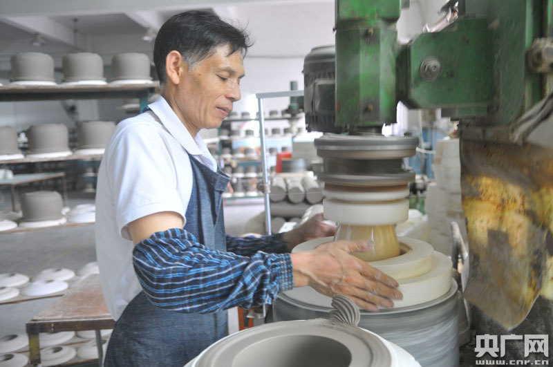 工人們正在加緊生產(chǎn)出口陶瓷產(chǎn)品(央廣網(wǎng)發(fā) 通訊員陳聲年 攝)