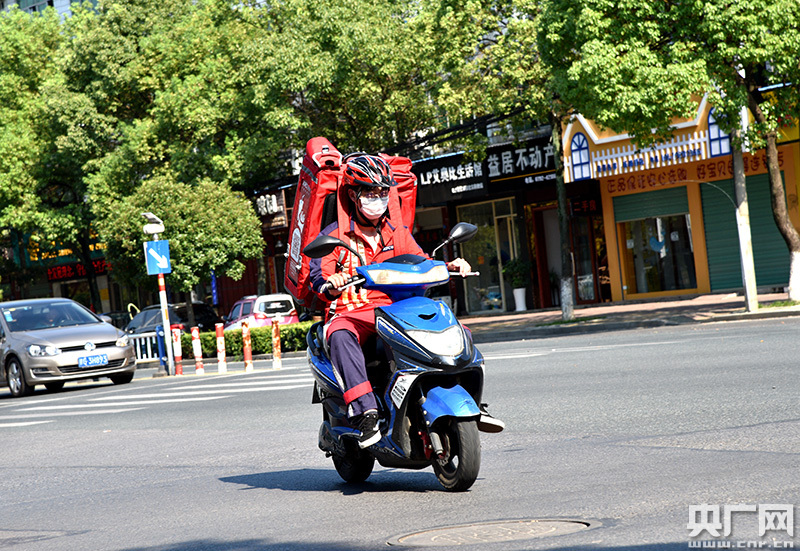 “快遞小哥”正在高溫下送快遞(央廣網(wǎng)發(fā) 通訊員張吉強(qiáng) 攝)