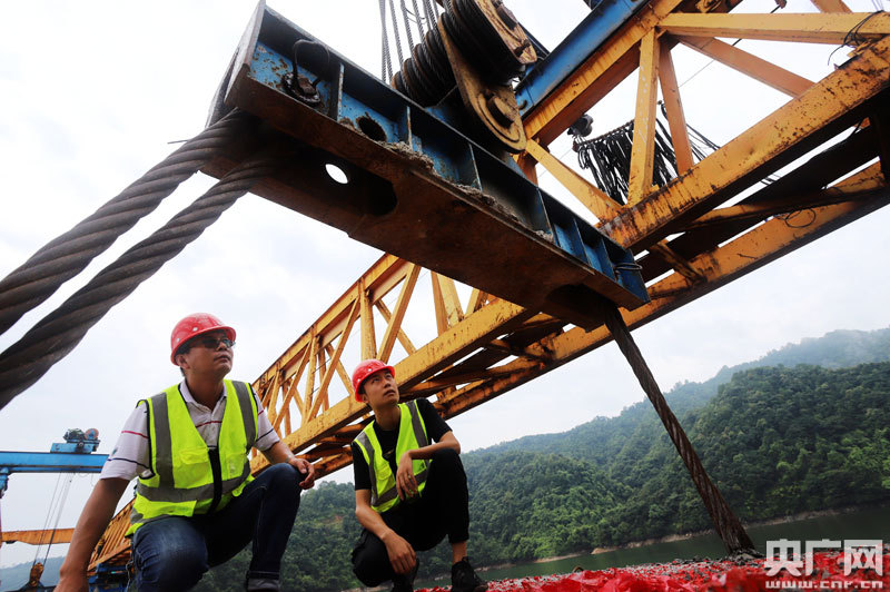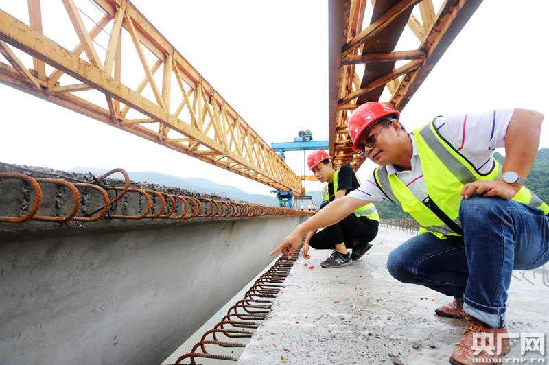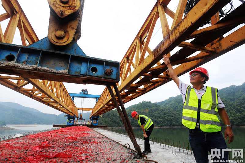 安?h泰洋公路社上大橋工程隊最后一片箱梁成功架設(央廣網(wǎng)發(fā) 通訊員劉麗強 攝)