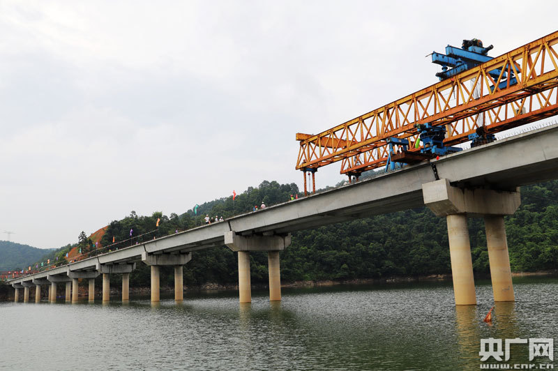 安福縣泰洋公路社上大橋工程隊最后一片箱梁成功架設(央廣網(wǎng)發(fā) 通訊員劉麗強 攝)