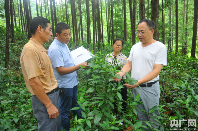 科研人員在兆坑林場(chǎng)草珊瑚種植基地進(jìn)行綜合測(cè)試(央廣網(wǎng)發(fā) 通訊員陳聲年攝)