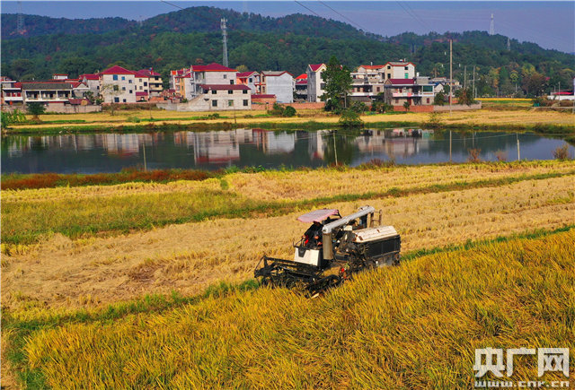 11月6日,在江西省吉安市泰和縣澄江鎮(zhèn)南圳村,農(nóng)民搶抓農(nóng)時正在收割晚稻。泰和縣引導(dǎo)農(nóng)民積極開展農(nóng)事活動,進(jìn)行晚稻收割,推進(jìn)冬修冬種工作。(央廣網(wǎng)發(fā) 通訊員鄧和平攝)