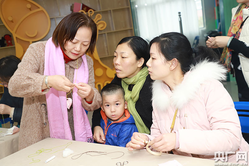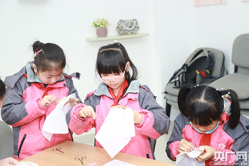 來自東湖小學的孩子們前來體驗非遺手工課程 江南貢繡的刺繡技法(央廣網發(fā) 受訪者供圖)