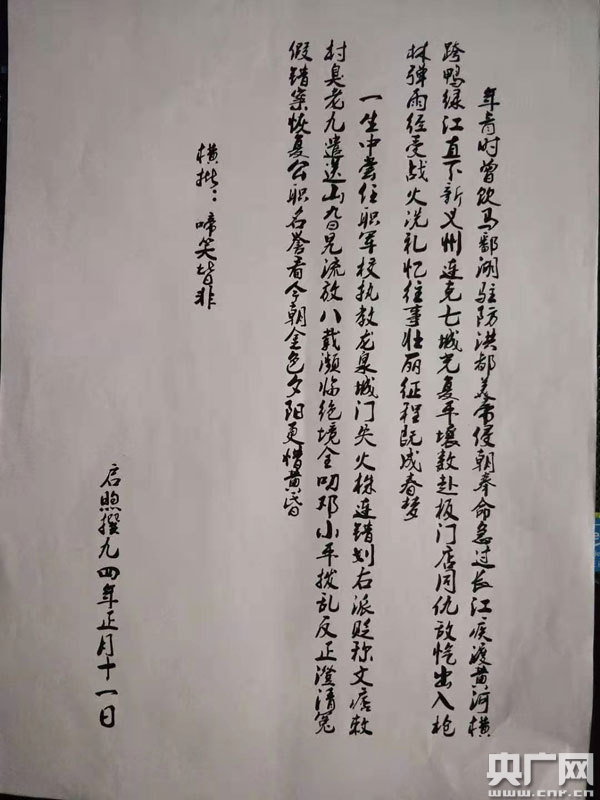 巫啟煦寫得一手好字(央廣網(wǎng)發(fā) 通訊員肖初生 攝)