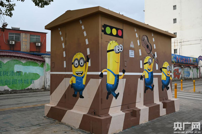 央廣網(wǎng)貴溪12月11日消息(記者王一凡 通訊員王瑩 易。┨崞鸾诸^的配電箱,可能很多人的第一印象都是銹跡斑斑無人問,但你能想到這些配電箱被噴涂上彩繪后已成了街頭一道亮麗的風(fēng)景線。近日,江西貴溪市街頭的配電箱穿上了“彩色的新裝”,變身“文藝范兒”。