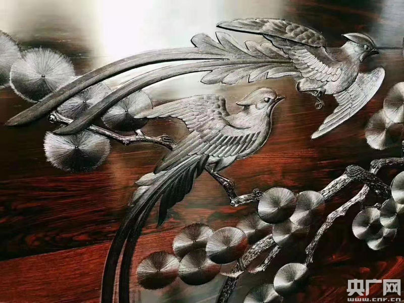 毛淳介紹,"絲翎"源于翎毛,因翎毛畫是工筆國(guó)畫的一種門類技法,"絲翎浮雕"保留中國(guó)工筆畫精致細(xì)膩、形神兼?zhèn)涞奶攸c(diǎn),通過(guò)木質(zhì)載體以淺浮雕的形式立體呈現(xiàn),產(chǎn)生不同的肌理效果,是木雕行業(yè)的一大創(chuàng)新。