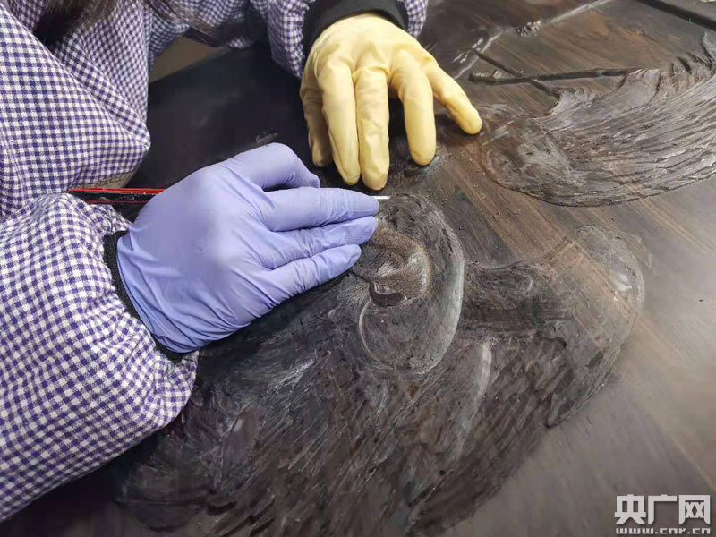 “余江絲翎浮雕”保留中國(guó)工筆畫精致細(xì)膩、形神兼?zhèn)涞奶攸c(diǎn),通過(guò)木質(zhì)載體以淺浮雕的形式立體呈現(xiàn)(央廣網(wǎng)發(fā) 通訊員供圖)