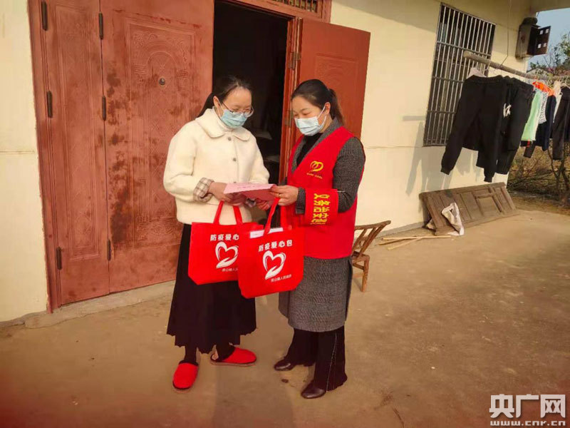 村委干部上門發(fā)放“防疫愛心包”(央廣網(wǎng)發(fā) 通訊員供圖)
