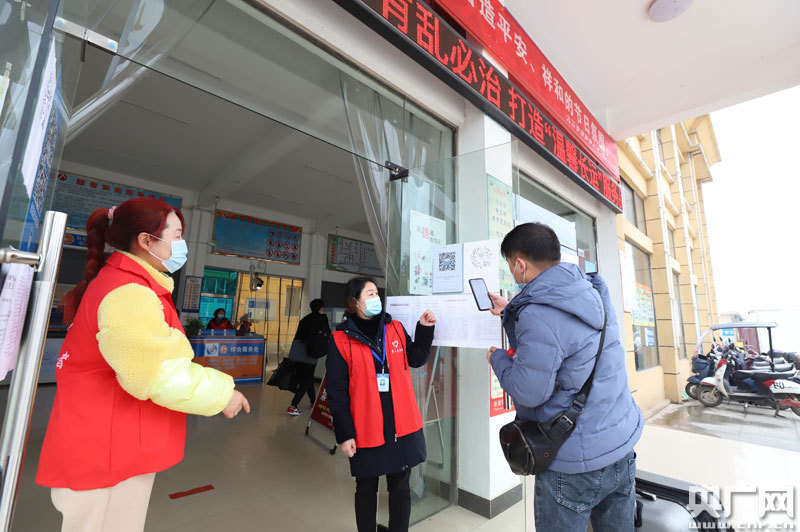 汽車站志愿者引導(dǎo)乘客掃碼出入(央廣網(wǎng)發(fā) 通訊員供圖)