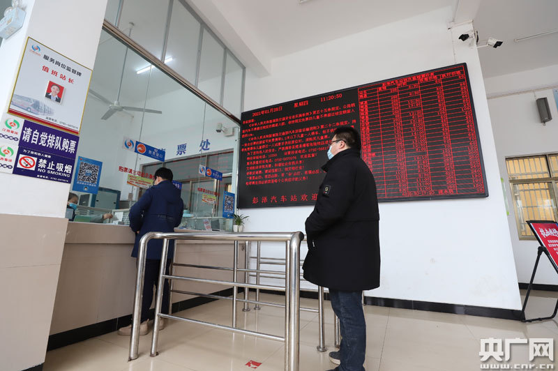 與往年春運(yùn)不同的是,因疫情的影響,在江西省彭澤縣火車站和汽車站,旅客三三兩兩,全然沒有了往年那種人山人海、排隊(duì)進(jìn)站的場(chǎng)景。“昨天,我們只賣出了70多張票!迸頋苫疖囌菊鹃L(zhǎng)王德勝介紹道。雖然人流減少,車站防疫措施卻毫不放松,環(huán)環(huán)緊扣,需要過(guò)幾道關(guān)口,如出示健康碼、行程碼、體溫測(cè)量、安檢等方可購(gòu)買車票。