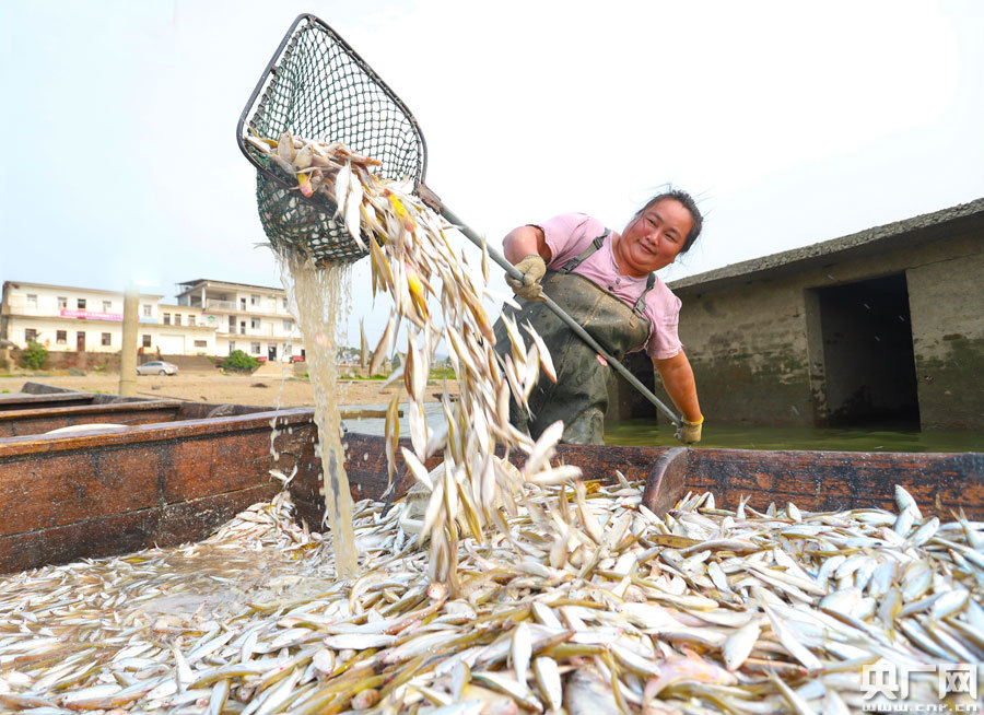 央廣網(wǎng)湖口10月8日消息(記者鄧玉玲 通訊員張玉)放網(wǎng)、收網(wǎng)、分揀、裝運(yùn),如此循環(huán)反復(fù),漁工們忙而有序,特別享受這場漁業(yè)豐收的盛宴。10月5日,湖口縣南北港水產(chǎn)場秋捕的肥美餐魚,迎來各地魚販紛紛前來搶購。